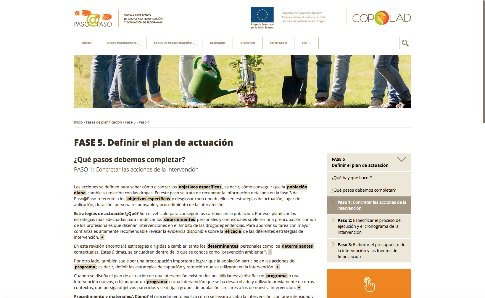 Paso a Paso és una plataforma per a generar projectes d'investigació en drogodependències per Europa i Amèrica del Sud. Paso a Paso es una plataforma para generar proyectos de investigación en drogodependencias para Europa y América del Sur. Paso a Paso is a platform to generate research projects on drug addictions for Europe and South America.